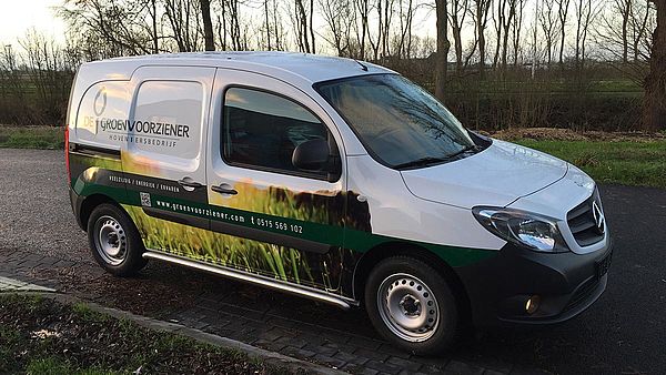 Wil je het bedrijfslogo volledig in kleur op je rijdende visitekaartje laten opvallen? Naast onze standaard foliekleuren, kun je ook kiezen voor een full color belettering. Op deze manier kun je het logo van je bedrijf in de originele kleuren op de auto laten aanbrengen.