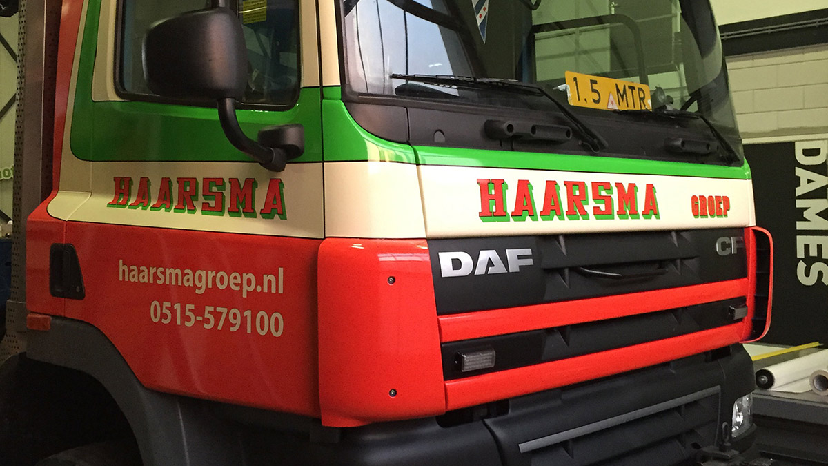 Wij printen een ontwerp of afbeelding in eigen huis op onze groot formaat printers. Hierdoor kunnen wij de auto bijvoorbeeld de kleur van de huisstijl geven of voorzien van een mooie foto.