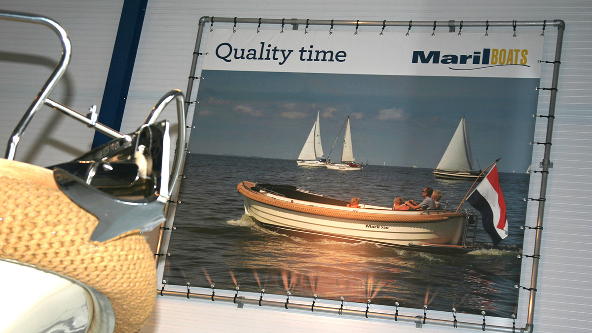 In het buizenframe wordt het bannerdoek bevestigd met elastieken. Dit zorgt voor een gelijkmatige spanning en een nette uitstraling. Bovendien vangt het systeem windbelasting goed op, waardoor het doek minder snel beschadigt.
