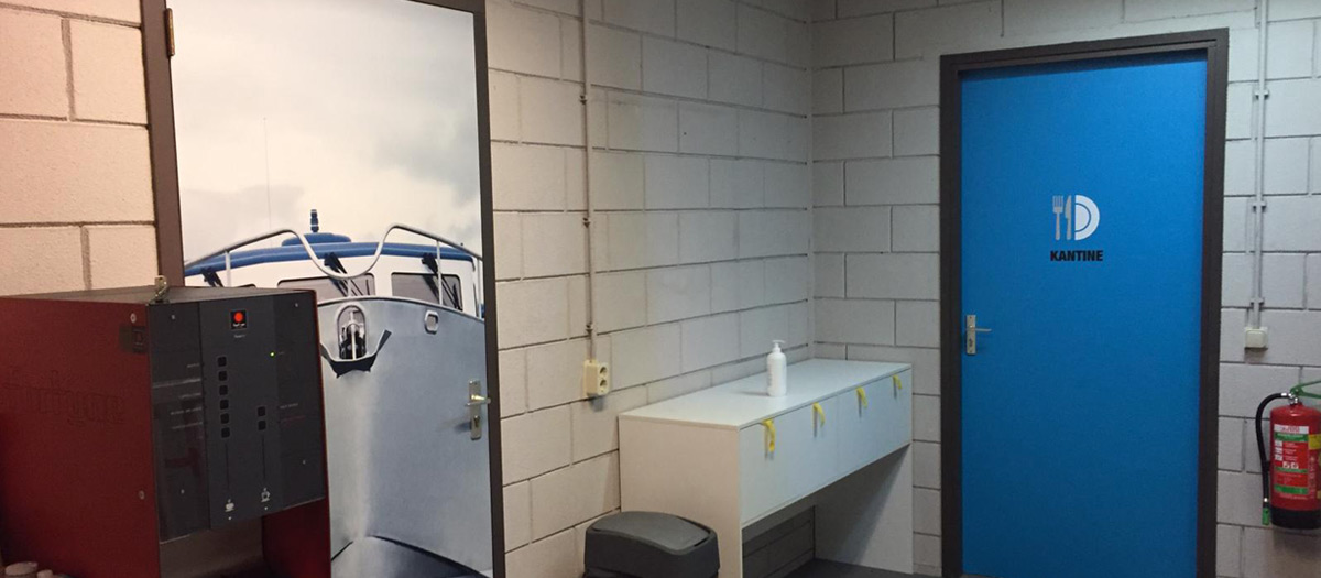 Ook binnen in het pand hebben wij de nodige veranderingen doorgevoerd. Zo hebben de vele deuren allemaal dezelfde blauwe kleur gekregen en maken icoontjes duidelijk wat er zich achter de deur bevindt.