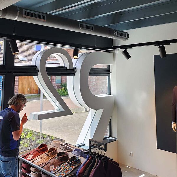 Het logo aan de buitenkant van het pand, bijna twee meter hoog, springt meteen in het oog en draagt perfect bij aan de uitstraling van ons merk.