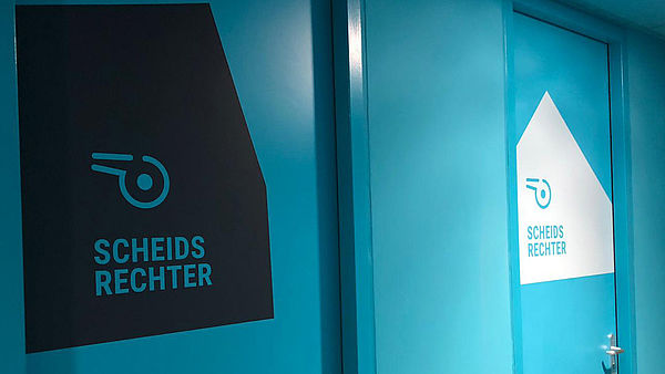 De vormen van het logo komen in de routing overal terug, samen met de huisstijlkleuren. Er zijn diverse deurstickers, freesletters van forex, raamfolies en vlaggen geleverd.