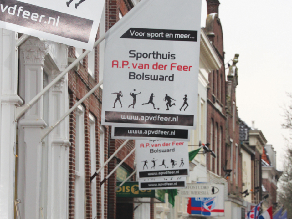 Een kioskvlag, ook wel driehoeksvlag genoemd, is een effectieve manier om jouw winkel of bedrijf extra op te laten vallen. Door de schuine vorm en plaatsing aan de gevel trekt een kioskvlag direct de aandacht van voorbijgangers. Ideaal voor winkels, horecagelegenheden en bedrijven in drukke winkelstraten.